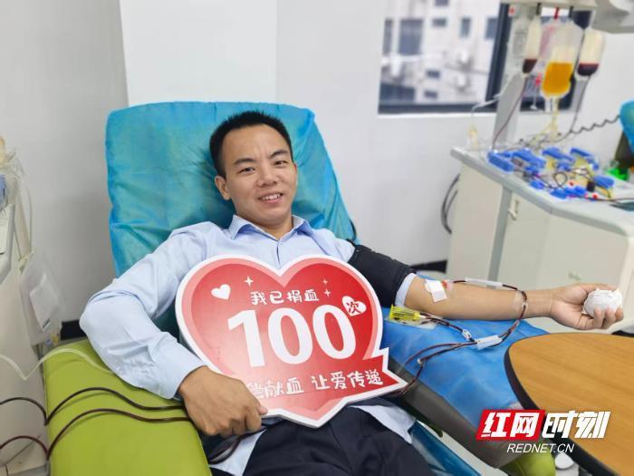 红网时刻新闻10月19日讯(通讯员 彭碧莹)近日,株洲市中心血站迎来了一位特殊的“老朋友”——快递员崔坤华。伴随着血细胞分离机的轻柔运转,他成功完成人生中第100次无偿献血,达成极具意义的里程碑。